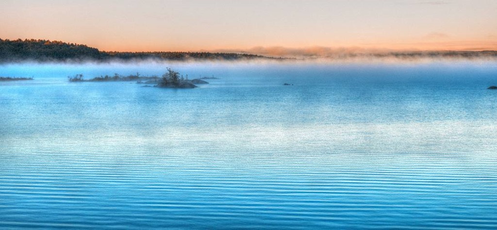 Delicate ripples salute the slight wind,
